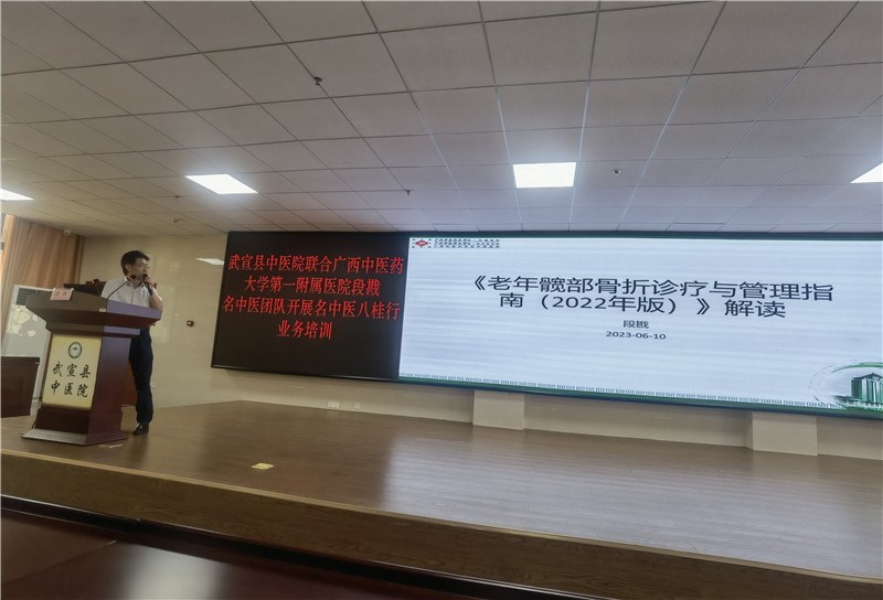 16日下午,段戡名中医团队7名成员为基层医护人员进行专科相关知识的授课。《老年髋部骨折诊疗与管理指南(2022年版)》(国家卫计委发布)的解读,结合我院经验——以四肢骨伤科为主组建的老年髋部骨折多学科团队(MDT)的诊疗和管理的经验,在基层医院普及、推广MDT诊疗理念;《<中国老年髋部骨折患者麻醉及围术期管理指导意见>的解读》,详细解读老年髋部骨折患者麻醉及围术期的新知识;《如何做好一台PELD》及《常见足踝扭伤的诊疗》,为基层医院讲解腰部疾病微创新技术的应用技巧,以及骨伤科常见疾病足踝扭伤的诊疗规范;《浅谈申报基金项目的一点体会》,为基层医院人员培养科研水平,提高基础医院工作人员的科研意识;同时进行护理专场授课,《皮内针在创伤骨科病人的应用》《耳穴压豆的中医护理》,推广实用技术。