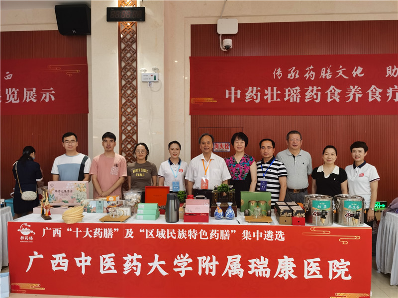 6月19日,由自治区中医药管理局主办的“十大药膳”及“区域民族特色药膳”集中评比在广西职业技术学院举行,共有来自全区的71支队伍带来的154个药膳产品参加评比,25家单位参加展示交流。附属瑞康医院药膳研发小组筛选研发了一批具有广西地域特色、具有良好的产业基础、能展现药膳“色、香、味、形、效”特点的药膳产品。经过院内遴选、中医药局初选,最终附属瑞康医院共有9个产品取得集中评比资格。