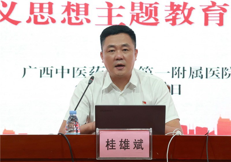 桂雄斌从“勇于自我革命是中国共产党百年奋斗取得的历史经验”“深刻领悟‘两个在路上’的科学内涵”“全面从严治党、推进自我革命,为一附院高质量发展提供坚实政治保障”三个方面与大家共同学习交流,深入讲述了党的六次具有里程碑意义刀刃向内的自我革命,系统梳理了我们党将自我革命不断推向深入,永葆党的生机活力的历史脉络。他指出,要深刻领悟“刀刃向内的自我革命永远在路上”“全面从严治党永远在路上”这“两个永远在路上”的科学内涵,以永不懈怠的精神状态和一往无前的奋斗姿态,坚定不移把全面从严治党向纵深推进。桂雄斌指出,一是始终把加强政治建设摆在更加突出位置,坚守根本政治方向;二是坚持和加强党对一附院工作的全面领导,凝聚推动发展的强大合力;三是持续深化“清廉广中医”建设,巩固风清气正的政治生态。桂雄斌强调,要坚持以习近平新时代中国特色社会主义思想为指导,时刻保持“赶考”的清醒和坚定,严格落实新时代党的建设总要求,持续加强一附院党的建设,不断开创一附院全面从严治党新局面,为一附院高质量发展提供坚强政治保障,为谱写中国式现代化广西篇章贡献广中医力量。