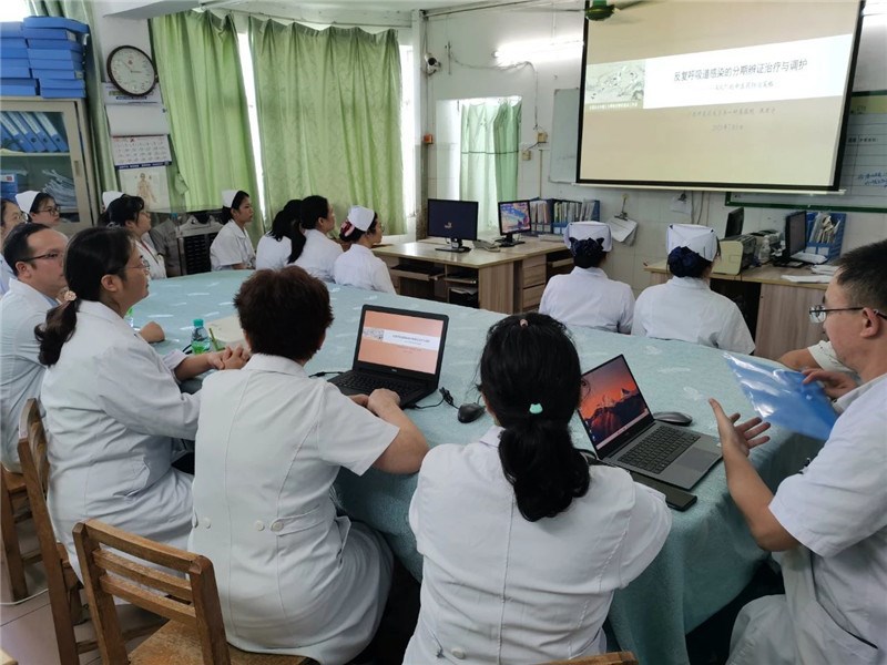 当日下午,王力宁教授结合自身长期在儿科临床中的经验,给内儿科医务同仁讲授了“小儿反复呼吸道感染分期证治思路”专题讲座,生动讲解介绍了小儿反复呼吸道感染在临证中辨治的分期证治思路以及不同分期的治疗要点。学员们认真听课,学习热情高涨,学习后纷纷表示受益匪浅,对中医辨治小儿反复呼吸道感染有了新的认识和拓展了新的治疗思路。