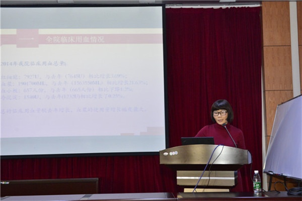输血科潘爱萍主任对2014年度临床用血管理工作进行总结汇报