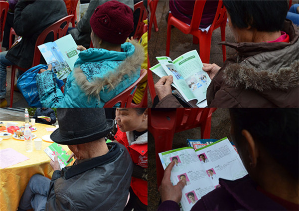 在义诊活动中,不仅寒风阵阵,天上还飘下了毛毛细雨。但一附院专家不顾天气的恶劣,在义诊现场耐心的为每一位前来咨询的群众解答疑问。青年学生志愿者们为在场的群众免费发放中医养生读本以及一附院宣传资料,许多群众对一附院的中医养生保健手册很感兴趣,不仅当场阅读起来,还希望多拿几本送给亲戚朋友。