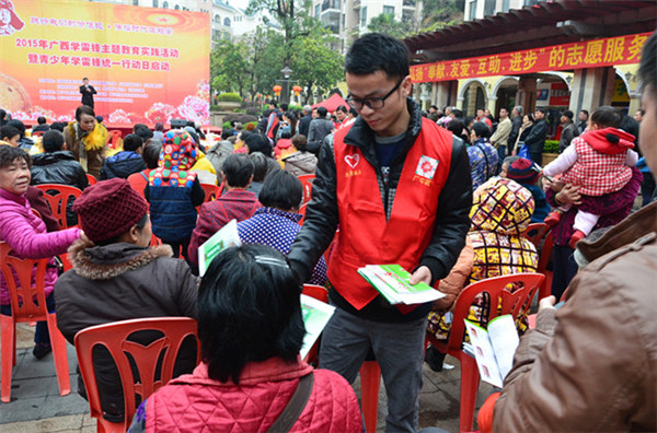 为响应自治区关于开展学雷锋主题教育实践活动的号召,2015年3月5日上午,一附院组织内分泌科、妇科、针灸科等专家组成的专家义诊团队,到普罗旺斯社区中心广场参加由自治区党委宣传部牵头主办的“践行我们的价值观、传播时代正能量”2015年广西学雷锋统一行动日启动活动。