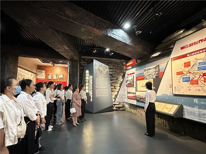 9月16日,在红军长征湘江战役纪念馆,全体人员认真观看展览,透过历史文物、文献资料、图像影音及复原场景,沿着红军长征血战湘江的足迹,重温中国共产党团结带领人民顽强奋斗的伟大历程;共同学习《从湘江战役中汲取再长征的力量》专题党课。随后,大家来到红军长征湘江战役脚山铺阻击战战场遗址,向湘江战役红军烈士敬献花篮,凭吊红军英雄先烈;面对鲜红的党旗,全体党员重温入党誓词,感悟信仰力量,赓续红色血脉。