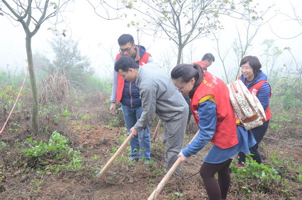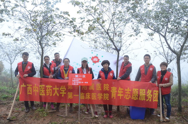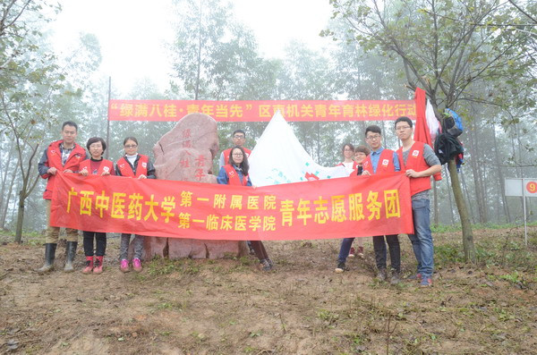 2015年3月14日上午,由自治区直属机关团工委主办的“绿满八桂·青年争先”区直机关青年育林绿化行动在广西国有高峰林场长客分场举行。一附院团委组织青年文明号集体骨三科和重症医学科及外联部、人力资源部等科室的10余名青年志愿者参加了此次铲草育林行动。