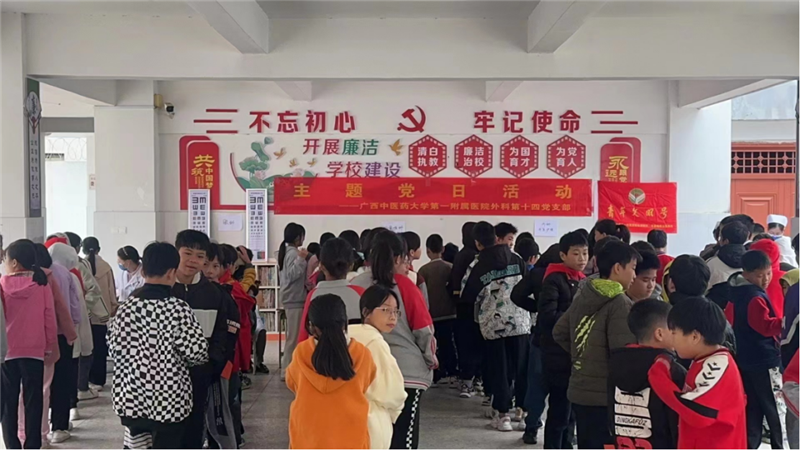 为推进健康中国建设, 11月15日上午,一附院外科党总支第四、第八、第十四党支部及仙葫院区党总支第十二党支部联合共建,前往隆安县南圩镇杨湾中心小学开展“医心向党,守护师生健康”义诊及健康科普宣传活动。