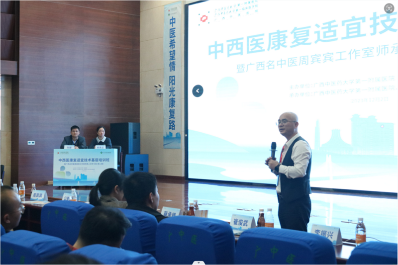 12月2日,以“中医希望情,阳光康复路,承岐黄薪火,传中医经典”为主题的2023年中西医康复适宜技术基层培训班暨广西名中医周宾宾工作室师承人员学习班(第二期)在广西中医康复中心-Beat365中国唯一官方网站第一附属医院隆重召开。本次培训班共有43个基层联盟单位参加,参与学员共计186名。