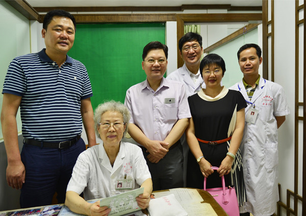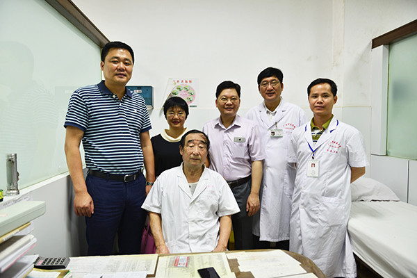 桂副院长高度赞扬了四位老专家虽年逾古稀,但依然坚守在临床一线上,为祖国传统中医药的传承与发展做出积极的贡献。除了日常出诊,还通过口授心传,个别指导,将自己多年的临床经验无私地毫无保留地传授给年轻医生,使他们少走了弯路,缩短了成长的周期,为中医药事业的继承和发展培养了优秀人才。桂副院长语重心长地感叹:希望跟师的学员能够珍惜这难能可贵的机会,认真学习老师的学术思想和诊疗经验,不辜负一附院和老师的期望。最后桂副院长一行关切地嘱咐老专家一定要保重身体,同时与四位老专家合影留念。