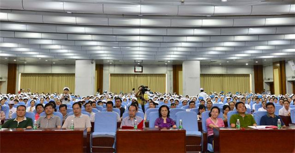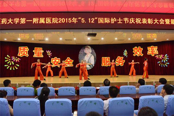 在这欣欣向荣、充满希望的红五月,“5.12”国际护士节再次如约而至。为庆祝护士节的到来,弘扬无私奉献的南丁格尔精神,表彰先进,鼓舞干劲,并对长期坚守在临床一线的护士兄弟姐妹们表示崇高的敬意。2015年5月11日下午,一附院在多功能学术厅举办以“质量、安全、服务、效率”为主题的“5.12”国际护士节庆祝表彰大会暨新护士授帽仪式。一附院院长黄贵华、党委书记李敏智、党委副书记、纪委书记、副院长吴西西、副院长卢健棋、桂雄斌、谢胜、周建国、钟远鸣出席大会。各职能部门和临床科室的主任、离退休护理前辈,全院600余名护士及82名新护士代表参加了庆祝大会。庆祝大会由副院长桂雄斌主持。