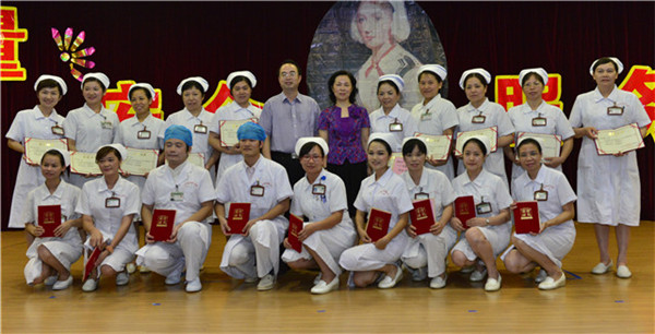 一附院院长黄贵华、党委书记李敏智为“十佳护士长”、“十佳护士”颁奖并合影