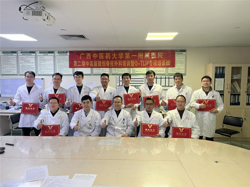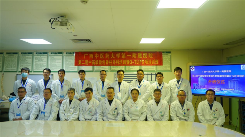 为了继续促进及巩固一附院专科联盟建设工作,扩大一附院脊柱外科相关技术在区内外的影响力,一附院仙葫院区脊柱外科继续秉着“公益、分享、交流、传承”的宗旨,1月22日-26日成功举办了“Beat365中国唯一官方网站第一附属医院第二期中高级微创脊柱外科培训暨Q-TLIF专项培训班”。