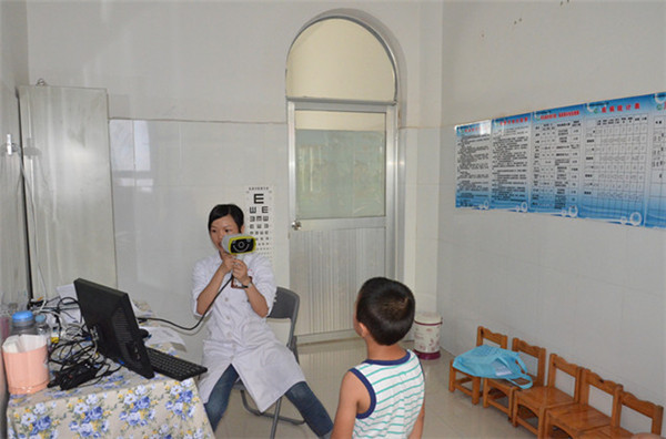 视光中心医师为小朋友做视力检查