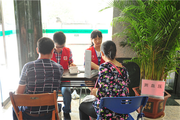 党员志愿者为群众测血压
