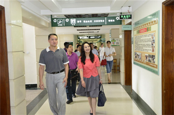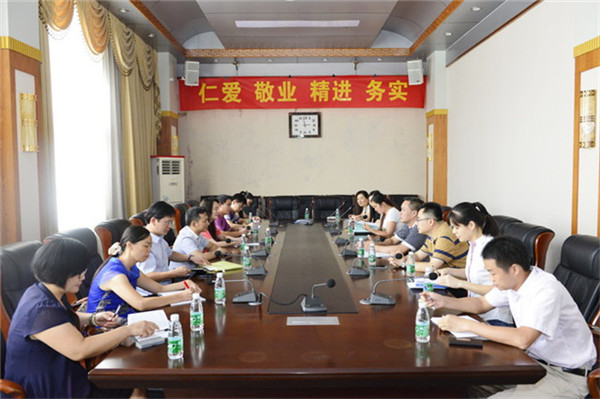 2015年7月9日下午,右江民族医学院党委副书记邓砚、党办副主任梁旭明、右江民族医学院附院副院长黄照河、医学影像学院副院长陆玉敏等一行8人前来一附院检查该校实习生的实习情况,一附院副院长钟远鸣、一附院教学部主任黄彬及放射科、护理部、检验科等职能部门领导热情接待了右江民族医学院党委副书记邓砚一行。