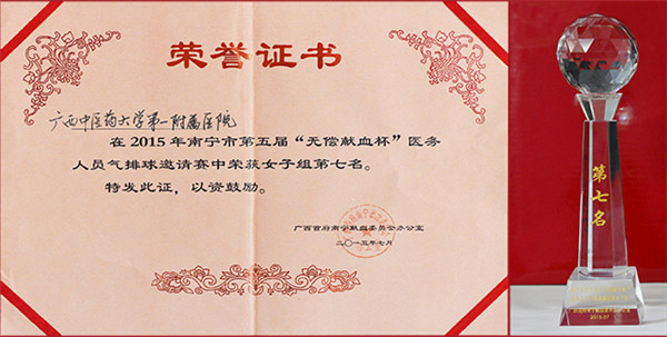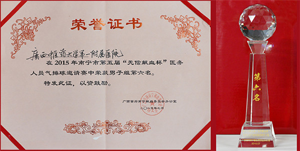 近日,在南宁中心血站球馆举行的南宁市第五届“无偿献血杯”医务人员气排球邀请赛中,一附院荣获男子组第六名,女子组第七名的好成绩。