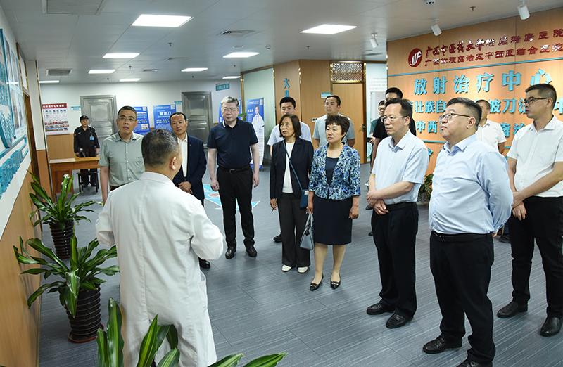 4月24日下午,学校党委书记莫锦荣陪同中国医学科学院放射医学研究所党委书记张剑虹、副所长刘强、应急办常务副主任焦玲等一行5人到附属瑞康医院参观交流。医院党委书记高宏君,副院长、总会计师庞刚,副院长韦思尊,纪委书记黄建民带领相关部门负责人热情接待嘉宾一行。