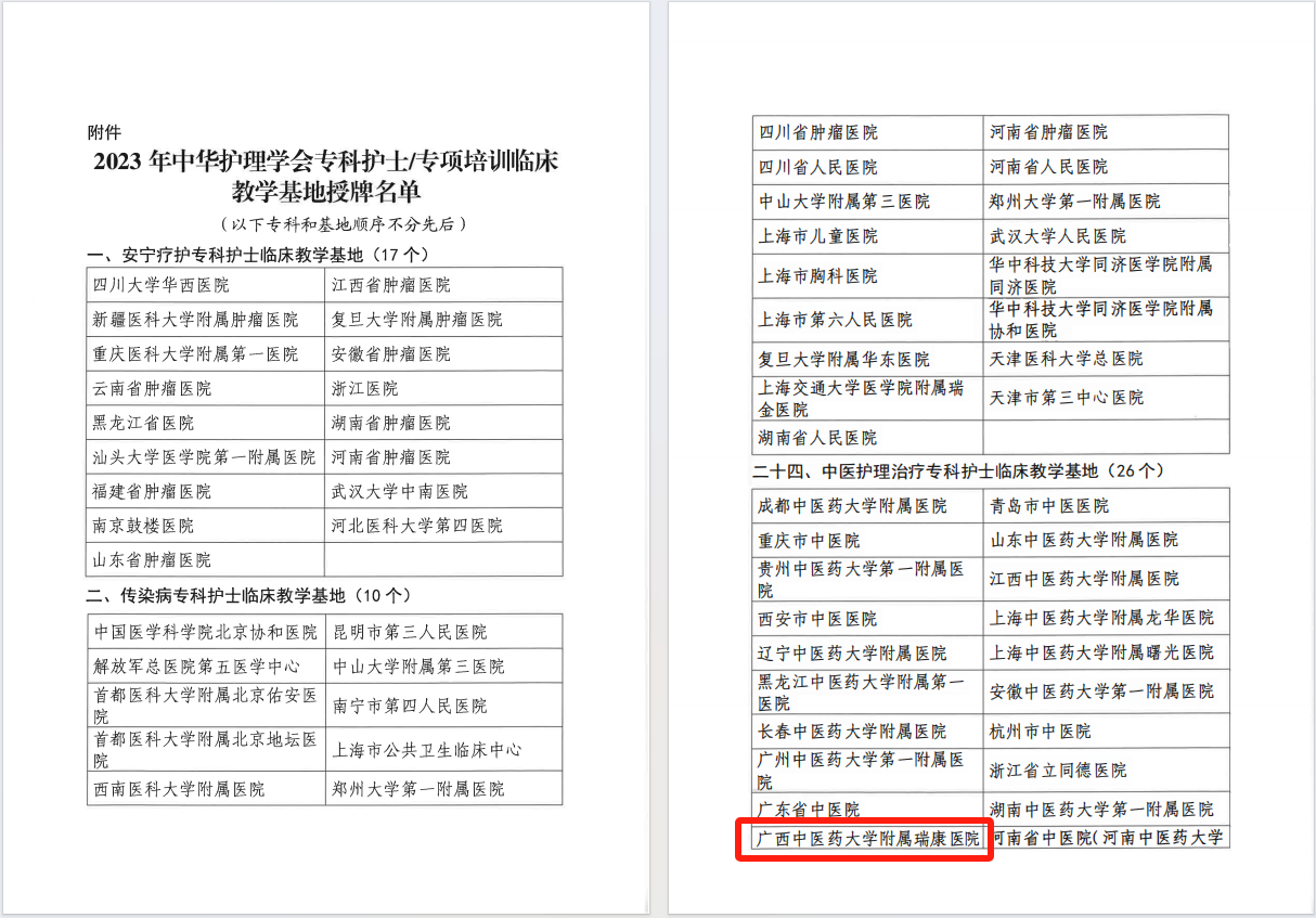 喜报:附属瑞康医院正式获批中华护理学会中医治疗专科护士临床教学基地
