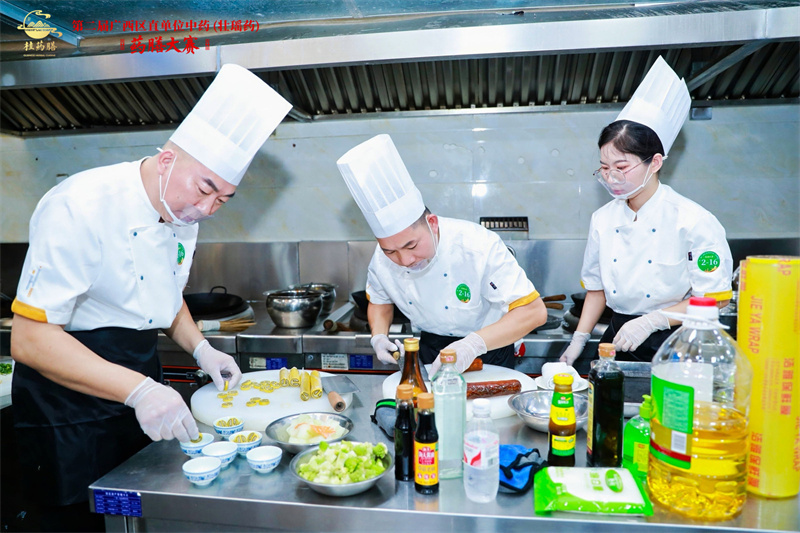 为深入贯彻落实自治区党委、政府《关于促进中医药壮瑶医药传承创新发展的实施意见》文件精神,由广西壮族自治区中医药管理局主办,广西二轻技师学院、广西壮族自治区中医药研究院、广西职业技术学院联合承办的第二届广西区直单位中药(壮瑶药)药膳大赛,于7月5日至6日在广西二轻技师学院举办。本次比赛以“传承中医国粹,弘扬药膳文化”为主题,共有45支区(省)级选拔队参赛。附属瑞康医院荣获大赛团体奖二等奖,并顺利晋升决赛。参赛队员詹源菲荣获个人一等奖,刘偲翔、刘倩菁荣获个人二等奖,黎明荣获个人三等奖。医院纪委书记彭定基到场观赛并指导。