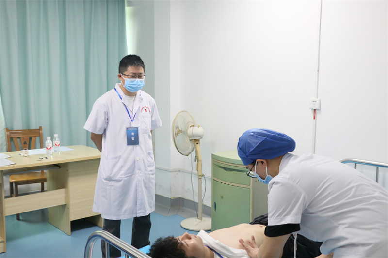 医院领导高度重视本次考核工作,基地主任、医院院长唐红珍,纪委书记彭定基到考试现场巡视指导。考核过程严格遵循公平公正、科学有序的原则,考核内容紧贴临床实际,分为基本技能考核与接诊能力考核两大环节,涵盖了应用AED的成人单人心肺复苏、中医技能、急救技能、病史采集、体格检查等内容,全面检验了学员的临床实践能力。