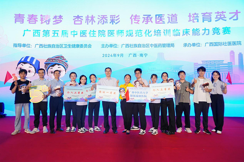 9月21日至22日,以“青春筑梦 杏林添彩 传承医道 培育英才”为主题的广西第五届中医住院医师规范化培训临床能力竞赛在广西国际壮医医院举办。来自全区13家中医住院医师规范化培训基地、3家中医助理全科医生培训基地的16支参赛队伍同台竞技,附属瑞康医院参赛队取得团体和个人一等奖的好成绩。