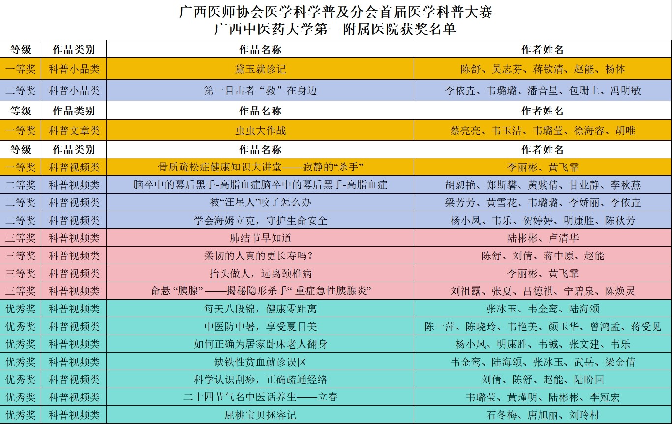 【喜讯】第一附属医院在广西医师协会医学科学普及分会首届医学科普大赛斩获多项荣誉