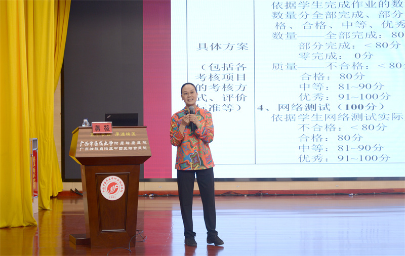 医院邀请到了学校基础医学院中医基础理论与内经系主任、内经教研室主任及资深硕士研究生导师蒋筱教授担任授课老师。课堂上,蒋筱教授从如何学习中医基础理论出发,围绕中医学的概念、理论体系的形成与发展以及主要特点进行授课。蒋筱教授表示,中医学是一门发祥于中国古代的具有独特而完整的理论体系、丰富的防治疾病方法的传统医学;是中国人民长期同疾病作斗争的极为丰富的经验总结,具有数千年的悠久历史,是中国传统文化的重要组成部分。中医理论体系历经魏晋隋唐、宋金元、明清、近代与现代的发展历程,涌现出《黄帝内经》《难经》《伤寒杂病论》《神农本草经》等代表作和众多名医名家,以及“五脏一体观”“形神一体观”“精气神一体观”等整体观念、“六经辨证”等辨证论治的纲领。