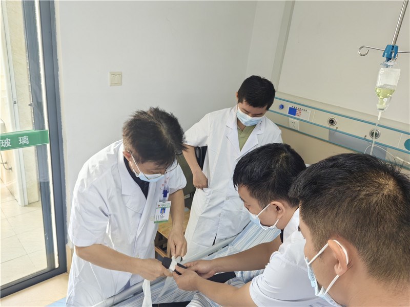 名中医段戡团队成员、中医治未病中心骨干为基层医护人员进行专科相关知识授课,普及推广中医骨伤科、中医治未病理念在基层医院应用。段戡教授持续推进杉树皮小夹板技术在骨伤科的应用,除理论知识授课外,还亲自示范小夹板操作技巧及讲解注意事项等。此外,治未病中心骨干就其团队建设经验进行了分享,段戡教授在该院骨伤科病房进行了术前、术后病例讨论查房。