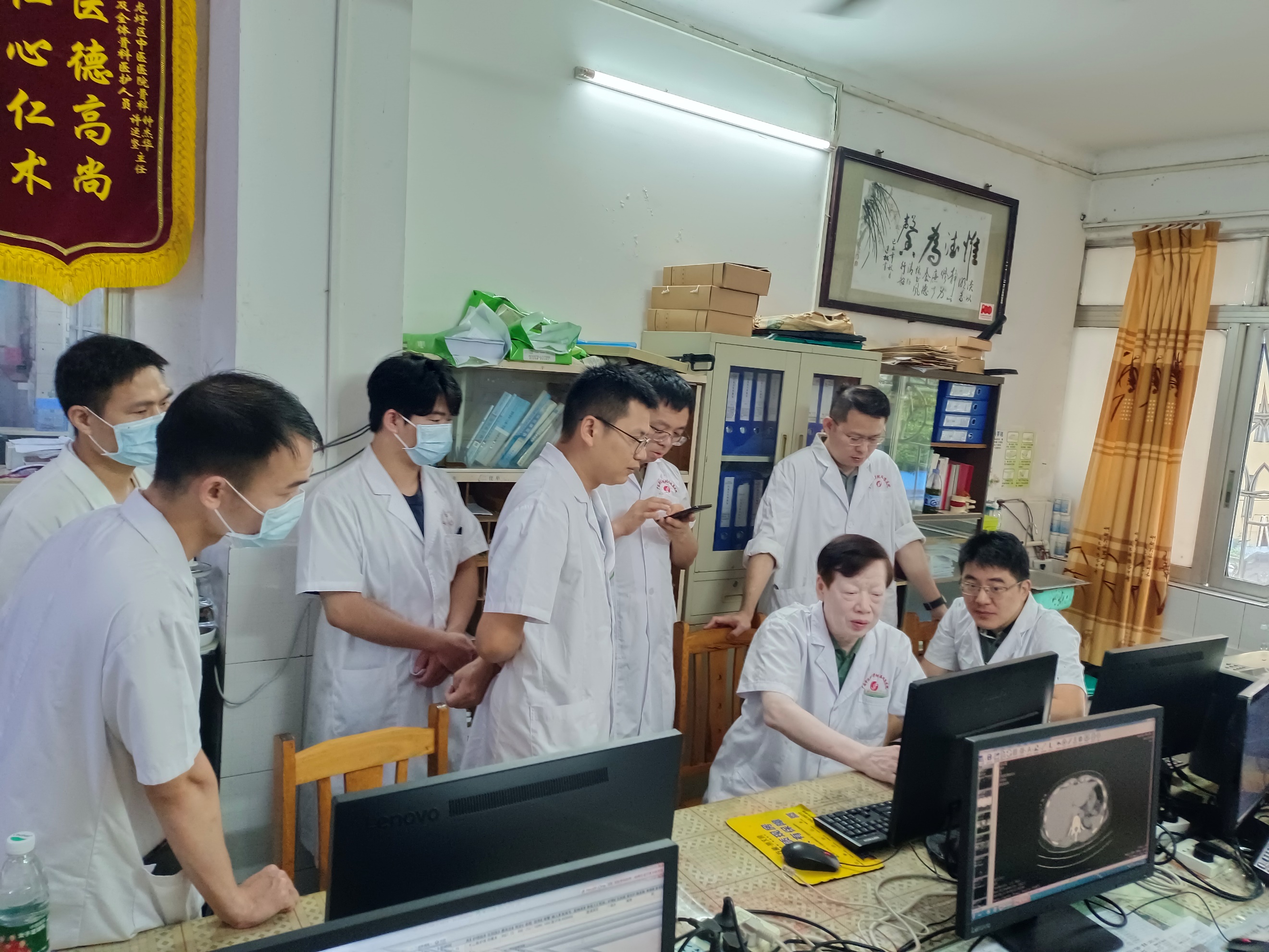 10月20日上午,黄有荣教授团队来到龙圩区中医医院开展教学查房、病例讨论,与科室医护人员对重点疑难病例进行了深入细致的讨论,并提出规范的诊疗方案。随后,黄有荣教授又前往名中医工作室为慕名前来就诊的患者看病。