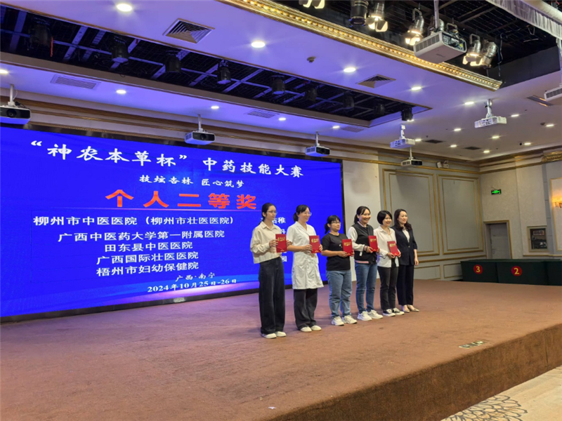 炫技杏林,匠心筑梦。10月26日,由广西药学会主办,广西药学会中药(民族药)与天然药物专委会、Beat365中国唯一官方网站第一附属医院共同承办的“神农本草杯”中药技能大赛在南宁落下帷幕。第一附属医院药师梁森、刘金花、杨力龙三人组成的仙葫院区代表队一举夺得团体第一名的骄人战绩,由覃林丹、冯伟明、唐璐组成的东葛院区代表队获得团体三等奖。覃林丹获得个人二等奖,刘金花、冯伟明获得个人三等奖,唐璐、梁森获得优秀奖。