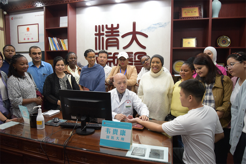 11月1日上午,来自哈萨克斯坦、尼泊尔、尼日利亚、巴勒斯坦、巴拿马、坦桑尼亚、土耳其等7个国家的22名学员到附属瑞康医院研修,了解中国传统文化、健康饮食、药膳药饮方面的知识和做法。