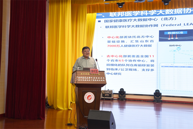 培训会中,薛付忠教授以《创建研究性临床大数据平台、推进医院IIT协同创新》为题,从联邦医学科学大数据协作网络联盟、研究型医学科学大数据平台、临床研究设计及其因果解析、高通量模拟目标试验、精神病数字筛查、药物靶点数字筛选及精准治疗探索、假设驱动与数据驱动优势互补的医学研究新范式六个方面展开讲解,为参会人员带来了一场拓展视野、内容丰富的讲座。