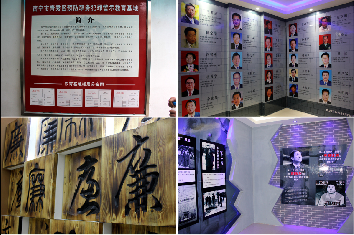 参观内容分为《指导思想 行动纲领》、《依法治国警钟长鸣》、《榜样力量 永远丰碑》、《传承文明 共筑梦想》四个单元,涵盖了中国反腐倡廉战略思想和制度建设历程、各个时期全国及广西惩治和预防职务犯罪成果、近年来发生的腐败典型案例、广西各地的党员楷模、廉政文化等内容,以文字、图片、雕塑、模型等多种表现形式,图文并茂地从多角度阐述主题, 以案说法、以案说纪,强化对党员领导干部的警示教育,给参观者带来强大的感染力、震撼力和冲击力。