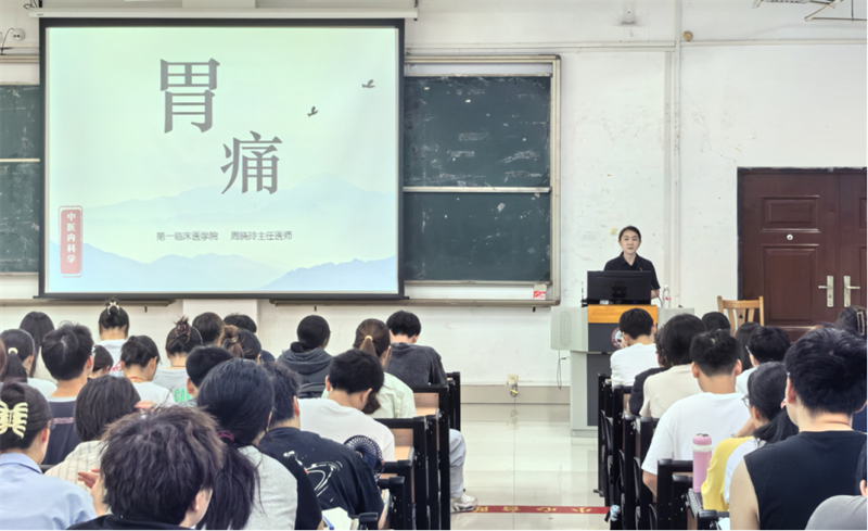 周晓玲以“胃痛”为主题,在授课过程中融入课程思政元素,通过病案分析、小组讨论等形式,引经据典,全面培养学生的医德医风素养和中西医跨学科临床思维。