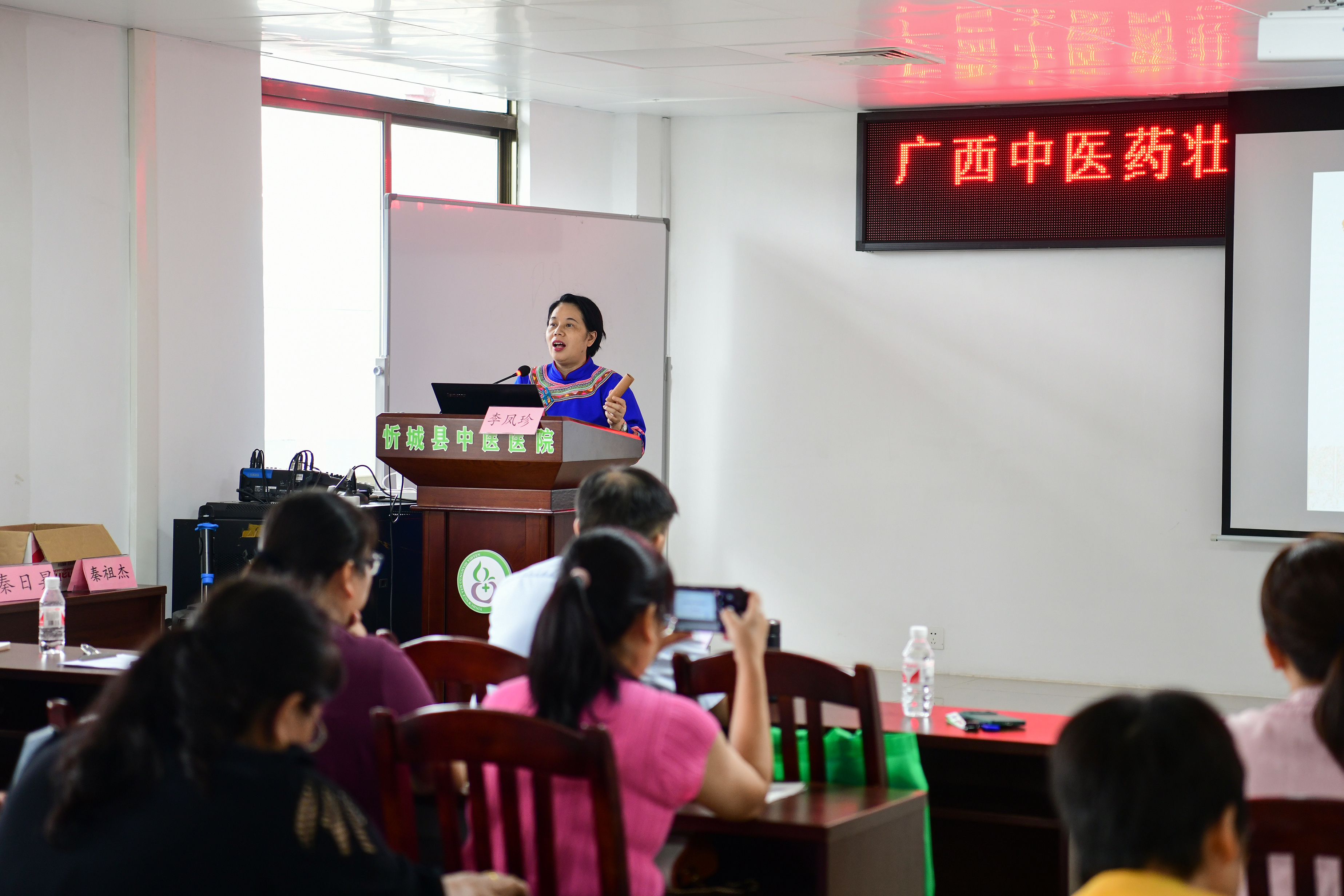 当日下午,广西国际壮医医院专家团队前往忻城县中医医院,为在场的医护人员带去一场精彩的学术讲座。秦祖杰、李凤珍、潘明甫、黄碧秋、秦日昇、吴小红等多位专家围绕“睡眠障碍的临床思辨”“壮医药物竹罐拔罐疗法及临床应用”“壮医药线升阳灸法”“中壮医介入的肺结节管理”“壮医滚蛋治疗在临床的应用及推广”“讲好民族医故事,推动壮瑶医药文化传播”等主题授课,分享学术思想、临床经验和中医药文化传播新路径,指导疑难疾病的辨证治疗,有效提升了基层医疗机构中医服务水平。