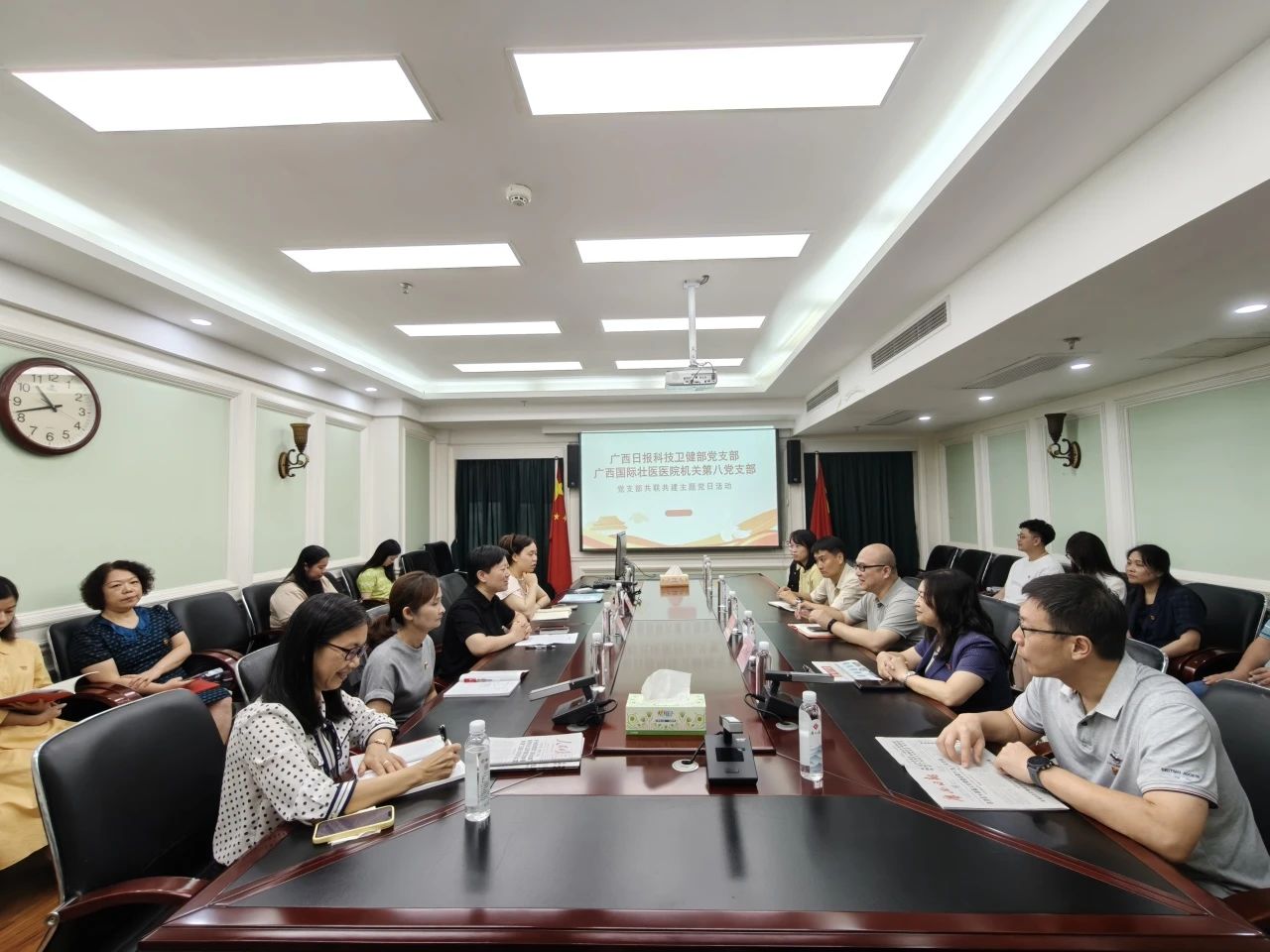 为充分发挥党建引领作用,推动党组织优势互补、业务协同发展,7月24日,广西国际壮医医院机关第八党支部与广西日报社科技卫健部党支部联合开展“联学联建强党性,砥砺奋进建新功”主题党日活动。医院党委副书记吴光以普通党员身份参加所在支部活动。