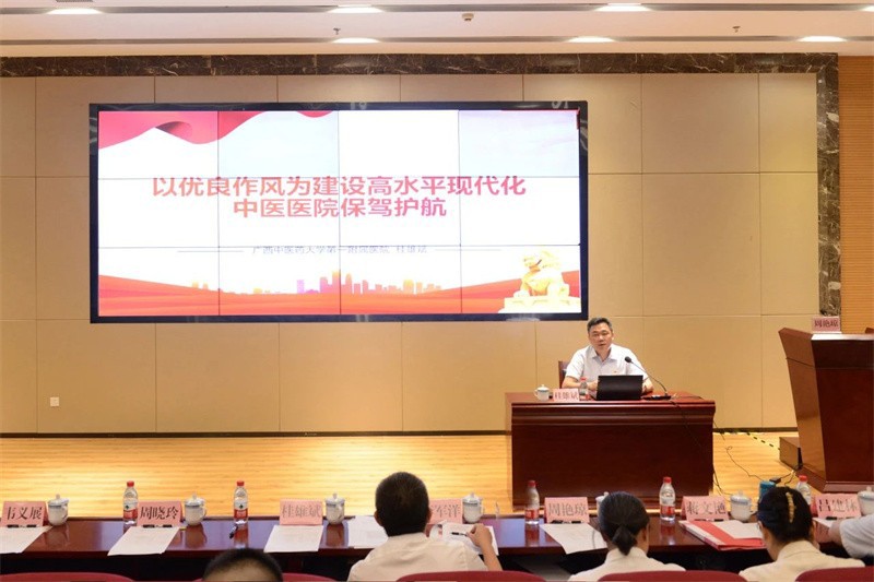 桂雄斌以《以优良作风为建设高水平现代化中医医院保驾护航》为题作为开班第一讲,他阐述了深刻认识开展深入贯彻中央八项规定精神学习教育的重要意义,通过典型案例,直观地展示了党的十八大以来深入贯彻中央八项规定精神的经验和成效。他强调当前医院以及仁爱分院仍处在爬坡过坎的关键期,需要各中层干部充分发挥中流砥柱作用,主动担当,抱团前进,并就如何以优良作风为建设高水平现代化中医医院保驾护航,对大家提出了三点要求:一是把好思想关,筑牢信仰之基;二是把好能力关,提升履职本领;三是把好作风关,锤炼过硬作风。