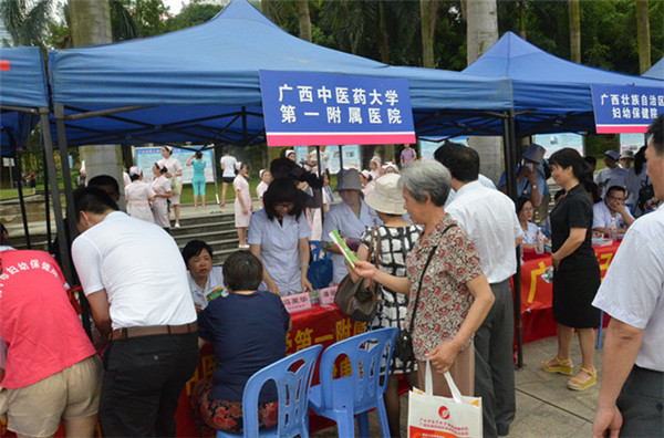 为宣传普及地中海贫血知识,提高群众对地中海贫血的认识,减少及杜绝悲剧地贫儿的出生,在全社会营造重视和关注地中海贫血防治工作的良好氛围,2016年5月9日上午,由广西壮族自治区卫生和计划生育委员会主办,南宁市卫生和计划生育委员会、青秀区卫生和计划生育局联合会承办的“爱,与您同在”主题义诊宣传活动在南宁市名树博览园举行。一附院派出由产科、输血科、预防保健科等专家组成的专家义诊团队参加本次义诊宣传活动。