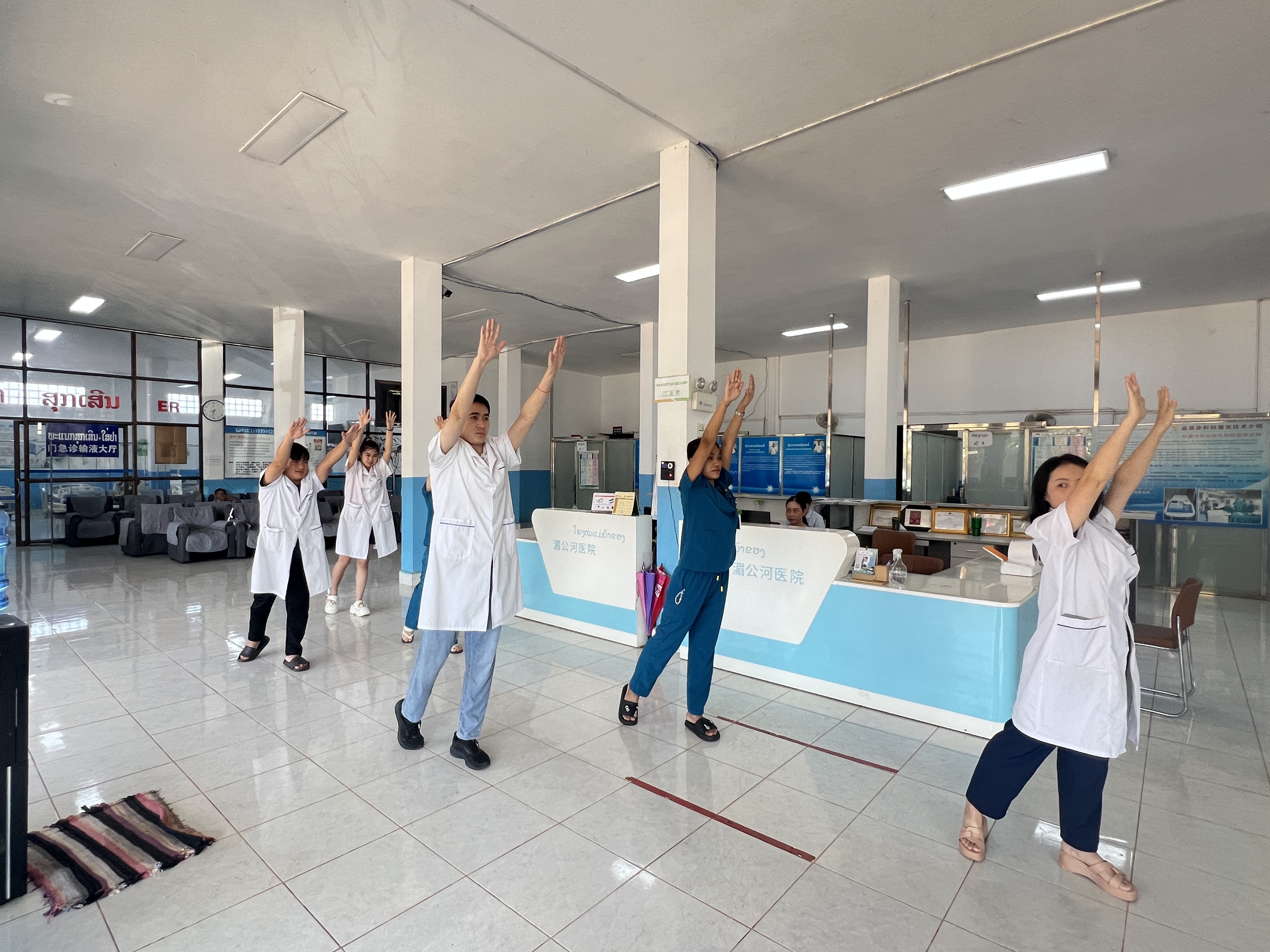▲医院组织职工每日练习《壮医三气养生操》,旨在传承与弘扬壮医文化,增强职工民族归属感,并普及健康生活方式。