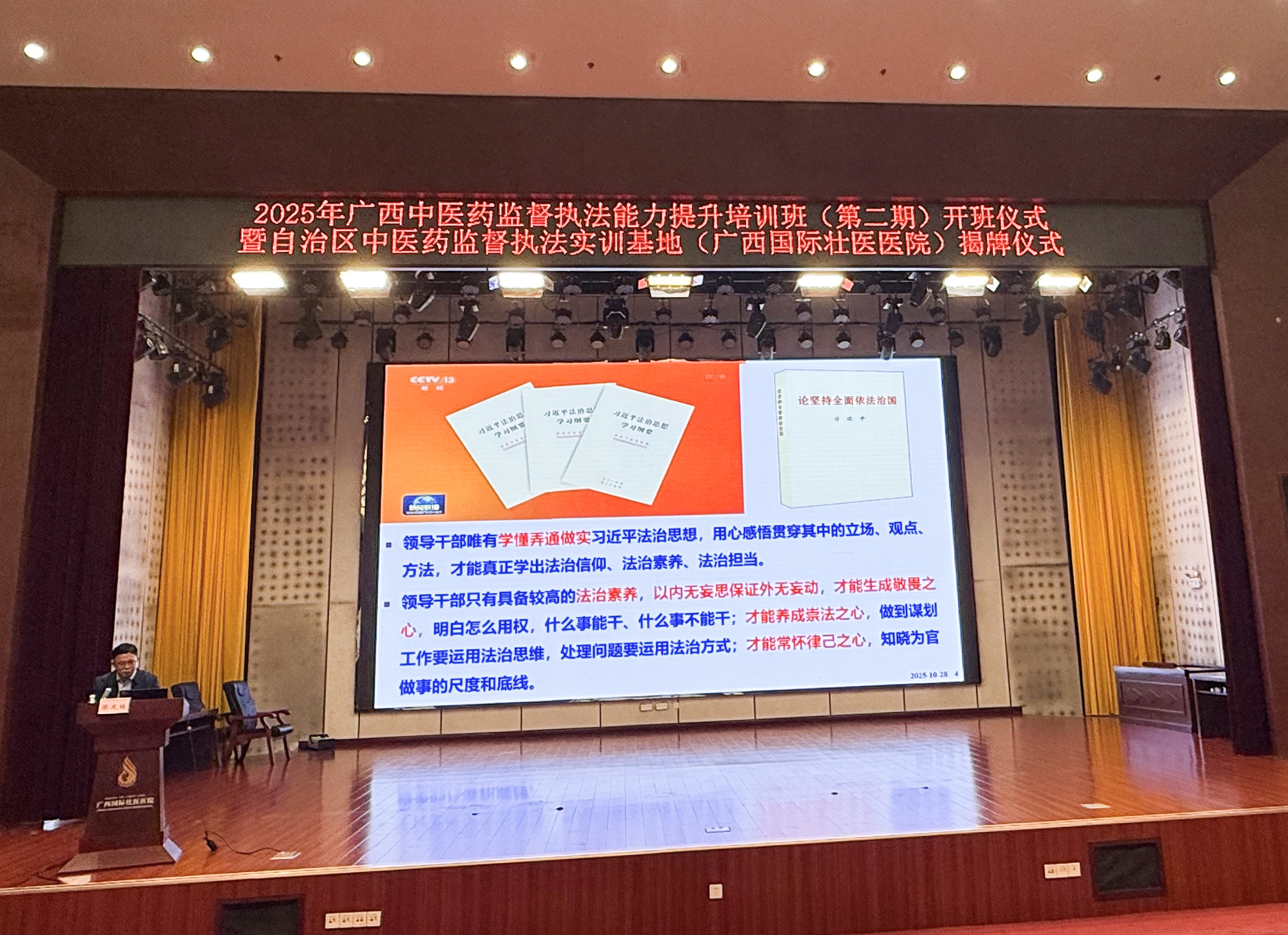 黎甲文在致辞中回顾了广西中医药监督执法工作取得的成效,并对“十五五”期间全区中医药监督执法工作做出具体部署,希望广西国际壮医医院实训基地瞄准发展目标,搭建起与医保部门的实训合作,构建“监督执法、医疗质控、科普文化、宣传交流”的四方共用平台,推动与先进省份实训基地互动,促进省际互学互鉴。
