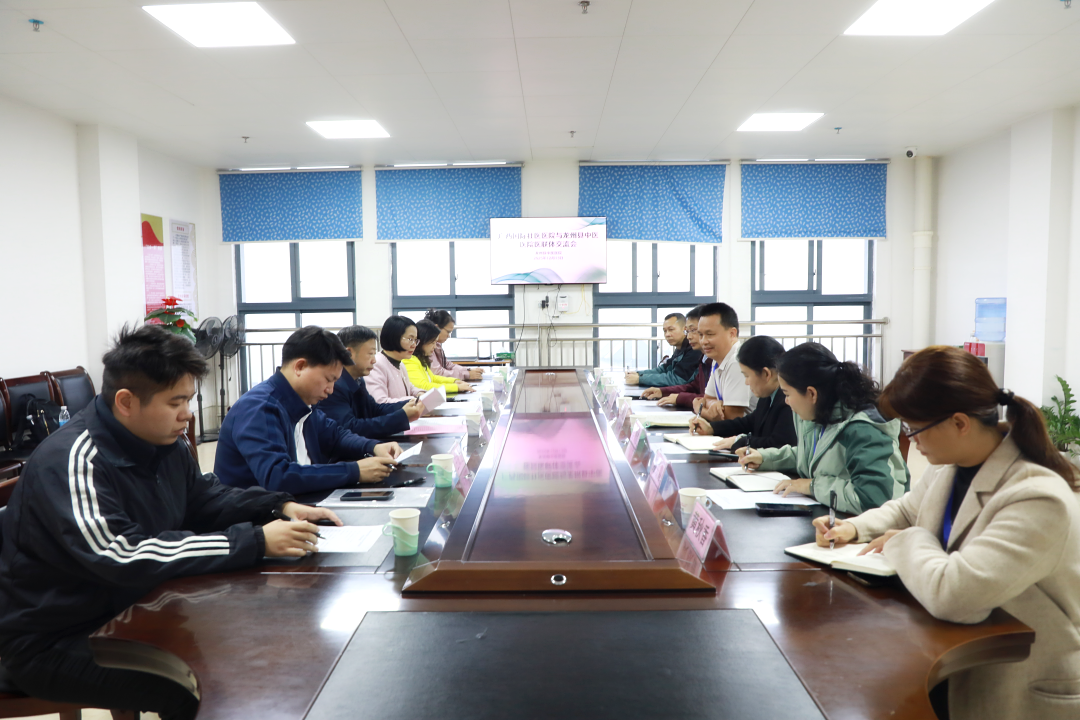 座谈会上,秦祖杰一行听取了医院发展运营情况汇报。龙州县中医医院表示,今年以“名中医八桂行”活动为契机,借助广西国际壮医医院支持,在中壮医技术与专科建设方面取得一定成效,希望下一步能继续加强合作。随后,双方围绕医院运营、人才培养、专科建设及院内制剂等议题进行了深入交流。