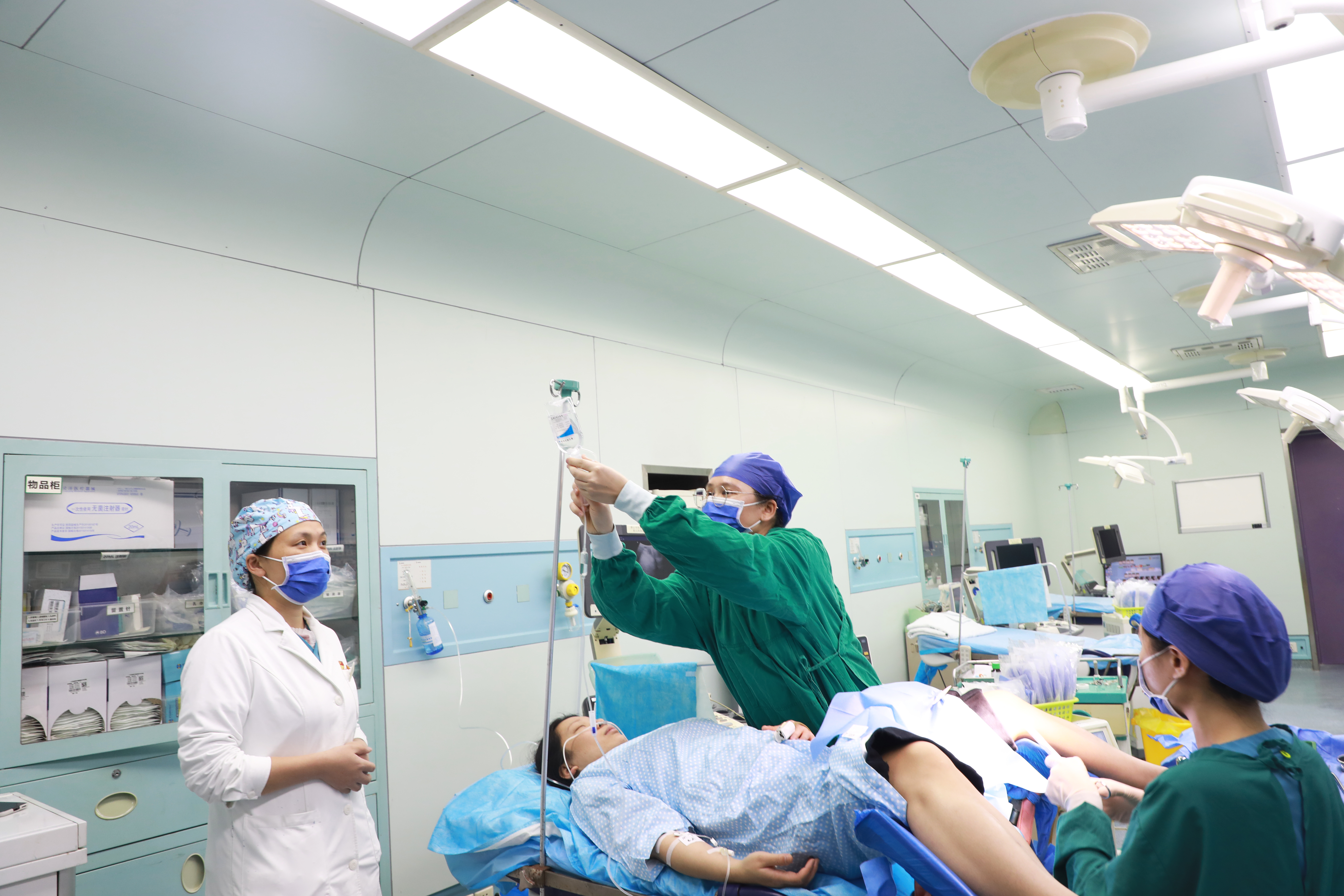 ▲术中患者出血量约100ml,手术医生启动科内应急预案,嘱静脉加入缩宫素10IU