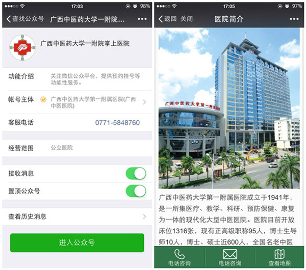 目前,一附院掌上医院微信公众号提供无卡建档、有卡绑定、预约医生、门诊/住院报告查询、门诊/住院费用查询等功能。缴费、挂号功能将于第二期上线。