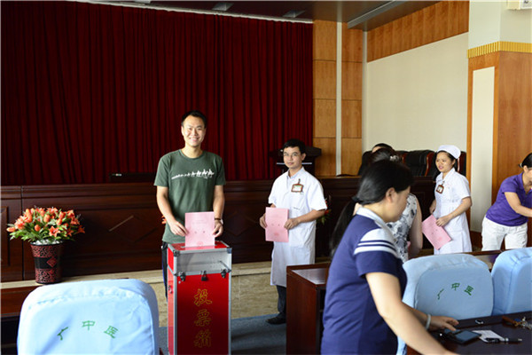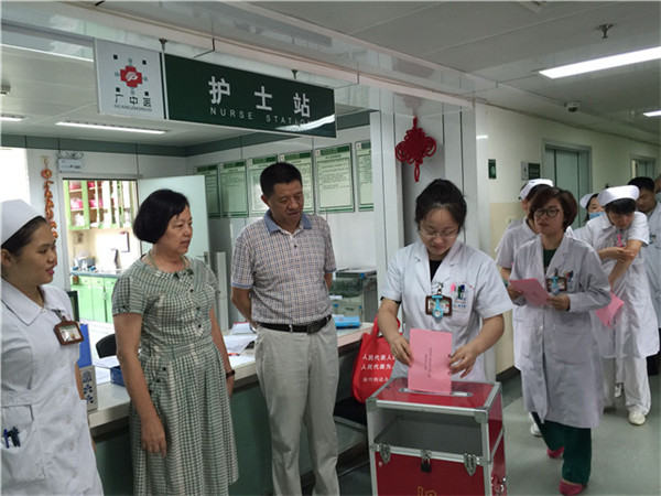 人大换届选举工作是坚持和完善人民代表大会制度的一项重要任务。根据城区人大换届选举工作的统一部署,6月28日为选举日。为了保证选举工作胜利进行,一附院领导高度重,工会精心组织,结合一附院的工作特点,选举时,在一附院医疗区、第一生活区、第二生活区分设3个投票站进行投票,按选民居住地进行分组,以方便选民投票,缩短等待时间。同时,设2个流动票箱,由工作人员分别到医务人员上班地点展开选举投票工作,使为病人服务和选举投票工作两不误。选举投票于上午9:30开始,下午5:30结束,选民们以饱满的政治热情和主人翁责任感,行使自己的民主权利,选举工作圆满完成。