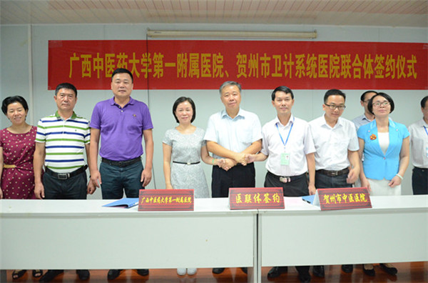 为了实现好“两学一做”活动的具体化和精准化,激发党员活力和主动作为,推动学习教育取得实效,2016年7月22日,一附院与贺州市的全部市、县中医医院组建的第3个市县中医民族医联合体网络:“Beat365中国唯一官方网站第一附属医院区域医院联合体”签约仪式,成功在贺州市中医医院隆重举行。