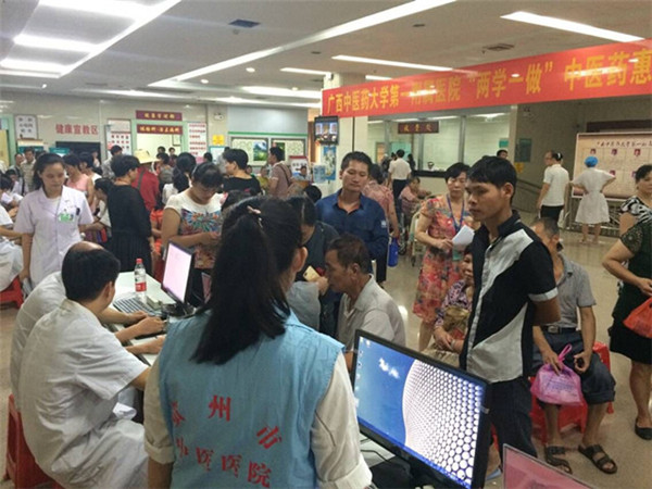 此次签约揭牌活动,一附院各临床科室的专家博士团举行一系列专题讲座、专家查房、手术示范、惠民义诊等技术合作和学术交流活动。21日晚为贺州市中医医院全体医务人员和部分县级医院基层医师举办了两场专题学术讲座。肺病科主任许光兰教授讲座题为《中西结合治疗肺系疾病》,外六科主任张高炼教授讲座题为《手术治疗颅脑疾病的临床分析》。两场讲座均切合基层临床需求,同时在新思维和前沿信息方面有创新括展,既有实用性也具备很强的理论指导作用,对基层启迪帮助很大,深受基层医务人员欢迎。22日上午,我院专家团队的广西名中医、肾病科主任史伟教授,广西名中医、康复医学科学科带头人周宾宾教授,疮疡和烧伤科主任张力教授,脑病一区主任胡跃强教授,神经外科主任张高炼教授,肺病科主任许光兰教授,眼科主任黎海平教授,肝病二区副主任王振常教授,骨一科副主任覃海飈副教授等专家进行了专科建设指导、专家查房、小讲课、惠民义诊等活动,对医院和科室管理建设进行了指导,针对贺州市中医医院临床专科的薄弱环节进行了指导纠正,指明了基层专业技术发展的努力方向。惠民义诊现场求医群众络绎不绝,共诊治群众300多名,发放健康宣传资料2000余份。