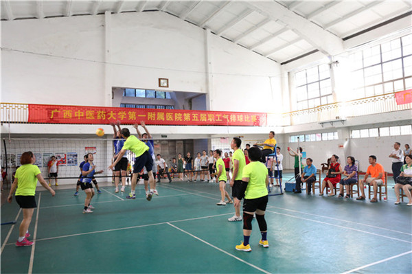 日前,医院第五届职工气排球比赛在南宁交通职业技术学院体育馆圆满落幕。来自医院各科室、各党支部的55支代表队运动员各显身手,赛出了自己的风格、技术和水平。医院领导和机关第一党支部组织了联合代表队,与广大职工进行了友谊比赛和交流。医院党委书记李敏智、副院长、工会主席周建国亲临现场指导观战并为获奖代表队颁奖。