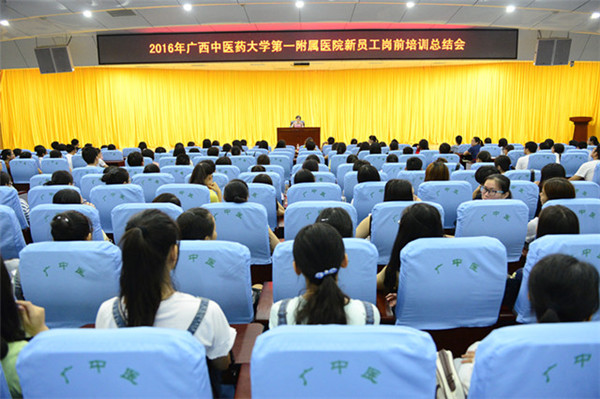 7月25日,在人力资源部主任谭丽云的主持下,2016年新员工岗前培训工作正式拉开序幕。此次岗前培训主要呈现以下几个特点:第一,领导重视,部门支持,准备工作充分。从一附院领导层面上来讲,一附院全体领导班子都参加了岗前培训的开班仪式,一附院院长黄贵华从医院的学科建设、教学工作、文化建设等方面给新员工上了第一堂课《医院的发展史》,使新员工对医院的发展、现状、未来有一个比较清晰的认识。一附院党委副书记、纪委书记、副院长吴西西给新员工讲授了《职业道德与廉洁自律》,她采用生动的案例向新员工强调了职业道德与廉洁自律的重要性。另外,一附院大部分职能科室如党办、医务部、护理部、财务部、科研部、信息科、后勤部、外联拓展部、一附院感染管理科、医保办、预防保健科、药学部、输血科等科室的主任就各自负责的相关工作方面的知识也向大家进行了讲授。第二,内容丰富,目标明确,师资层次高。此次岗前培训的目的是为了让各位新员工熟悉一附院,了解一附院,适应一附院环境,主要学习了医院文化建设,一附院人事、医疗相关制度,科研申报流程,病历书写规范要求等等各方面的知识,此外,参与此次岗前培训的授课老师都是具有较高学术造诣的专家学者或对本领域工作有深入研究的领导。第三,纪律严格,态度端正,学风浓厚。今年共有285名新员工参加岗前培训和考试,大家基本上都能遵守课程纪律,严格按照请销假规定,按时到课听讲,做好学习笔记。这说明大家都能自觉地把这次培训当作提高自身素质的重要机会,体现了大家良好的精神面貌和严谨的学习态度。