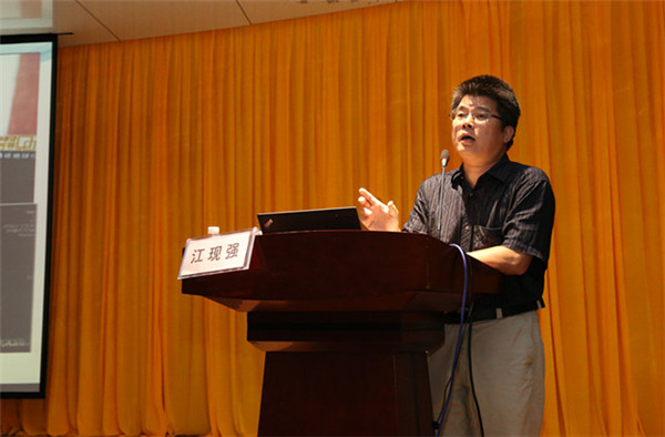 医患关系协调办公室主任江现强给新员工讲课