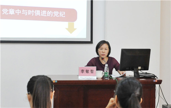 培训期间,李中华部长在《中国共产党的性质》讲座中,结合时事热点和数据分析进行了精彩的讲座,为学员们进一步诠释了中国共产党的性质--是中国工人阶级的先锋队,同时是中国人民和中华民族的先锋队,是中国特色社会主义事业的领导核心,代表中国先进生产力的发展要求,代表中国先进文化的前进方向,代表中国最广大人民的根本利益的一个政党;李敏智书记以《学好党章党规,争取早日成为一名合格的共产党员》为题做了精彩的讲座,从历届党代会的召开背景和党章的修订过程切入,带领大家重温党的发展历程,辅以大量生动案例,向全体学员强调了讲纪律、守规矩的重要性,向全体学员提出了学习、遵守党章的具体要求;黄贵华院长从《中国共产党的纪律》、《中国共产党党员条件、义务与权利》两个讲座,重点阐述了严肃党纪和反腐倡廉的重要性,让学员们认识到党的严明纪律,是我党团结和带领各族人民战胜敌人、取得胜利的关键所在,黄院长也分析了党员条件、义务与权利以及党风、党纪的涵义,让大家受益匪浅;教学党总支罗之瑜书记以《发展党员工作程序》为题为学员们讲解了党员发展工作的详细流程。