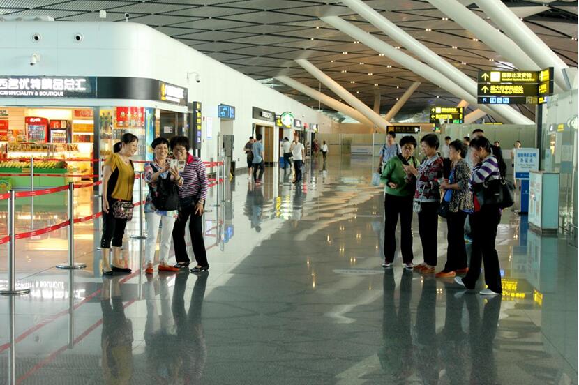 在宏伟现代的吴圩机场大厅合影留念
